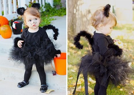Базою цього костюма є повністю чорний одяг — водолазка або футболка та штани чи легінси. Головний акцент — вушка, які можна зробити з чорного картону, оксамиту або штучного хутра, прикріпивши їх до звичайного обідка для волосся. Хвостик змайструйте з чорної тканини, набивши його ватою або синтепоном для об'єму, і прикріпіть до штанів за допомогою булавки або пришийте. Макіяж — ключовий елемент образу: намалюйте акуратний чорний носик, тонкі вусики на щоках, підведіть очі стрілками для створення "котячого" погляду. Можна додати чорні рукавички без пальців з наклеєними "кігтями" з білого картону. Цей костюм простий у виконанні, але завжди виглядає чарівно і елегантно.