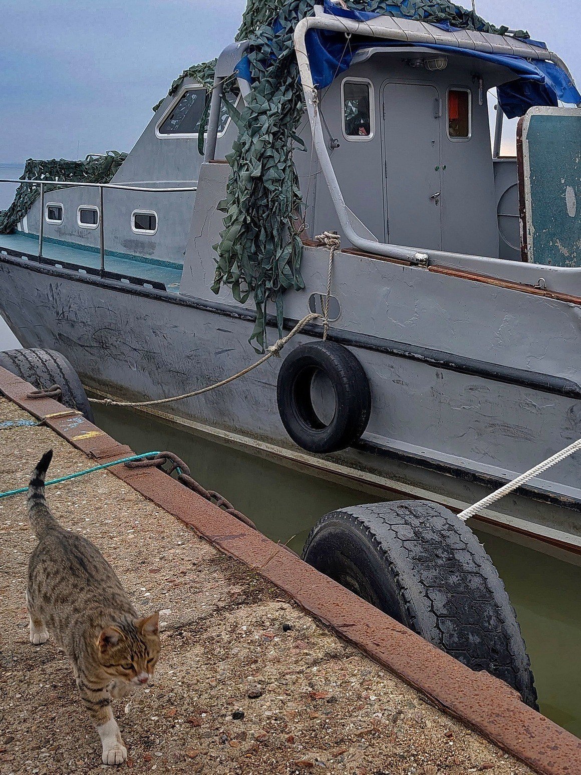 У пресслужбі ДПСУ повідомили, що пухнастий боєць зустрічає катери на причалі, "чергує" біля води та уважно стежить за тим, що відбувається довкола. Його можна побачити поруч із моряками під час повернення з рейдів або біля імпровізованого поста спостереження.