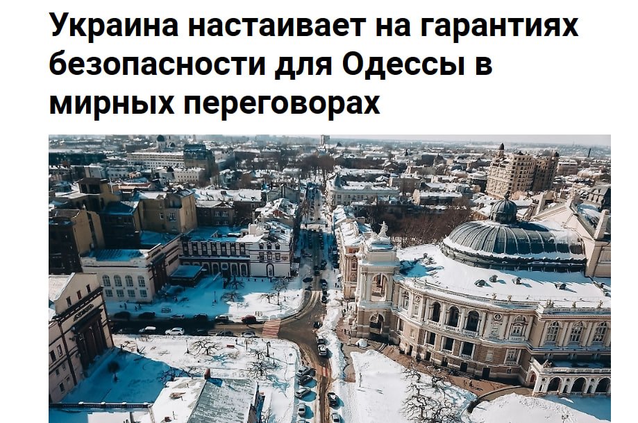 За інформацією, що циркулює у медійному просторі росЗМІ, українська сторона наполягає на закріпленні механізмів, які унеможливили б бойові дії в напрямку Одеси. Йдеться про юридичні або політичні гарантії, які могли б стати частиною ширшого пакета потенційних домовленостей.
