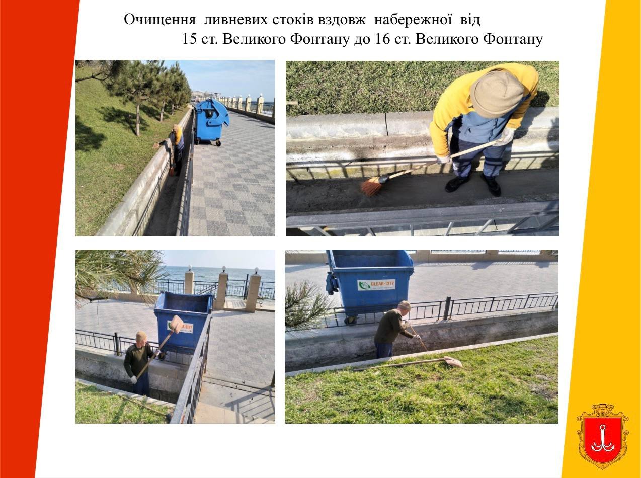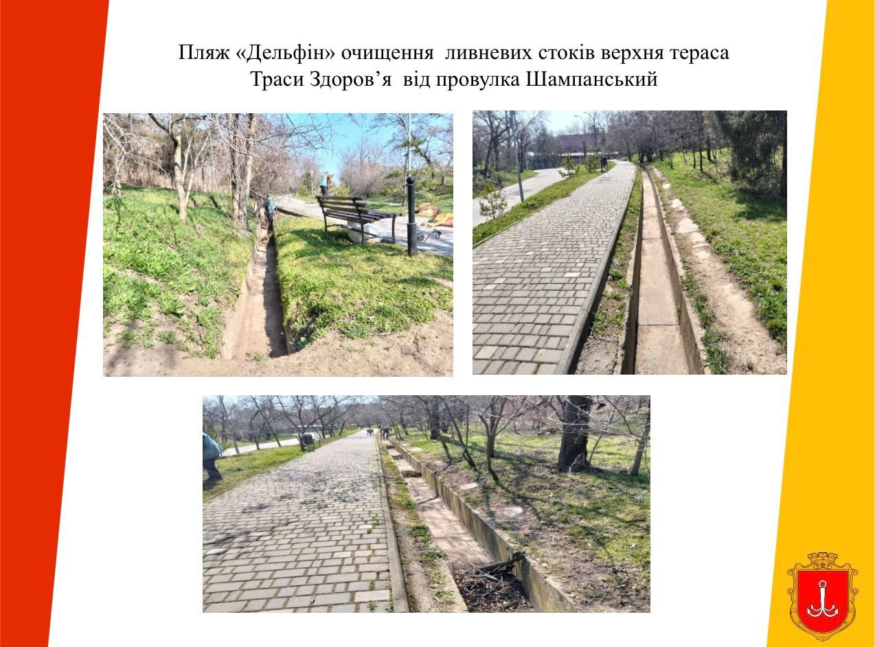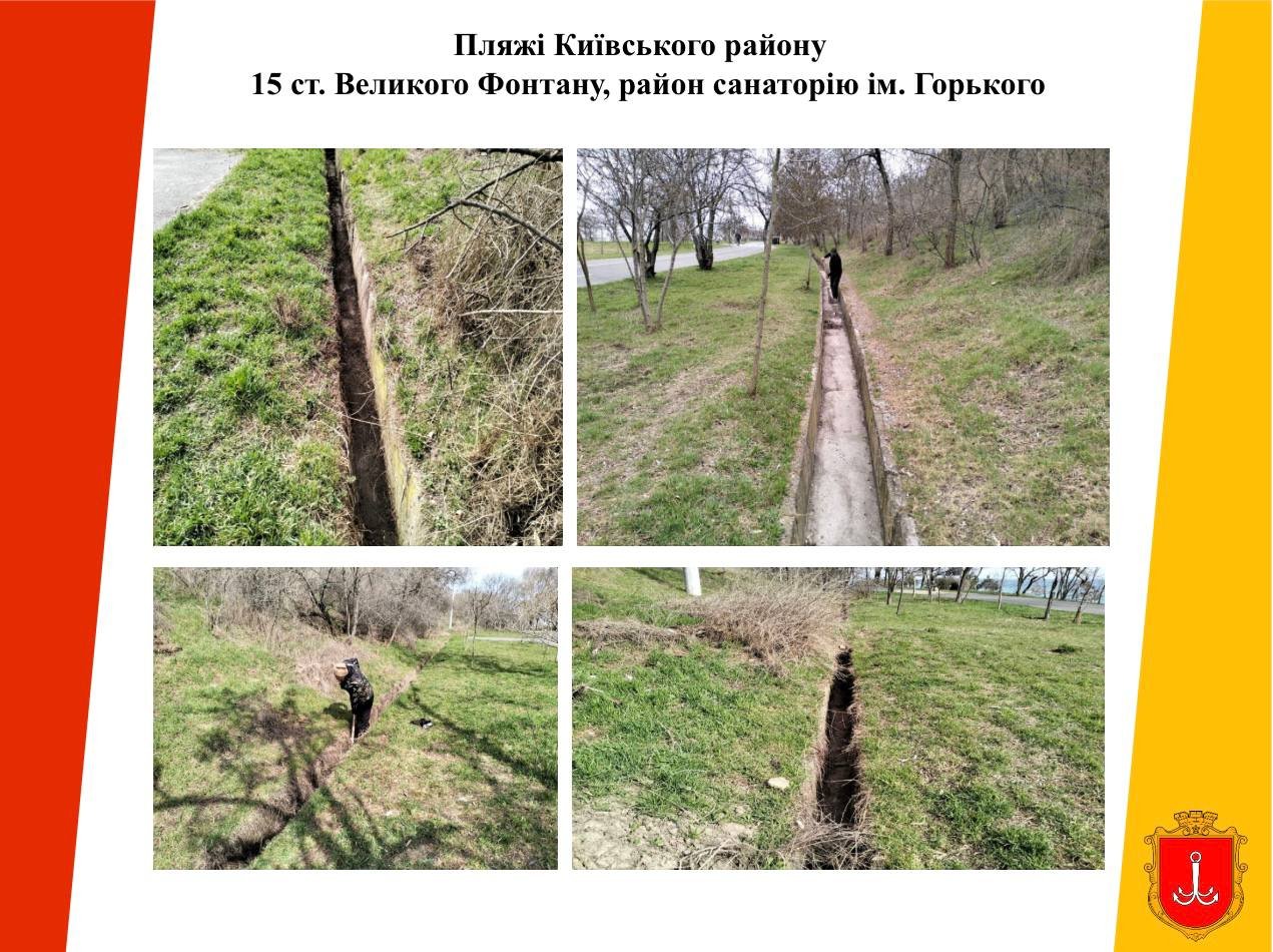 Як повідомляє Одеська міська рада, на обстежених ділянках зафіксовано накопичення побутового сміття, сухостою, гілок, як наслідок — водовідвідні лотки частково забиті листям і гілками.