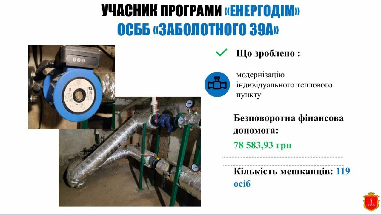 Про це повідомляє Одеська міська рада. Як зазначається, ці кошти допоможуть мешканцям відшкодувати частину витрат на впровадження енергоефективних рішень: модернізацію теплопунктів, теплоізоляцію та заміну трубопроводів систем теплопостачання.
