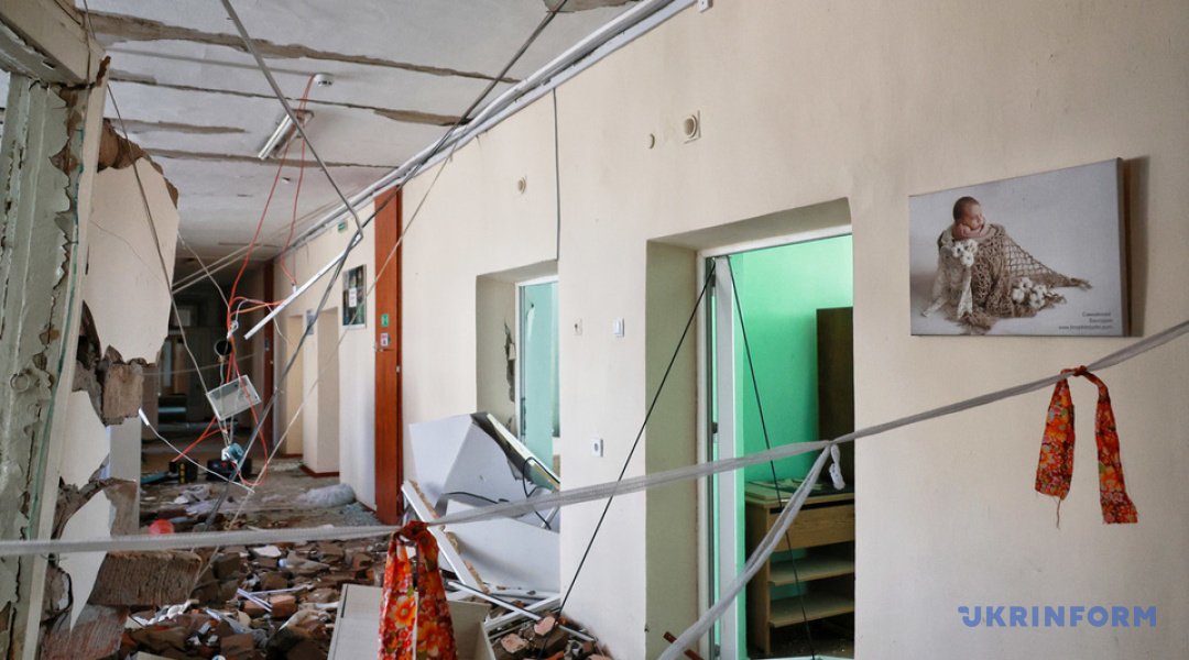 Постраждала покрівля, перекриття між 4 та 3 поверхом, зруйновані палати, де перебували породіллі з новонародженими. У момент атаки в лікарні перебували 27 медиків, 32 пацієнтки та новонароджені діти, серед яких — кілька двійнят і жінка, вагітна трійнею.