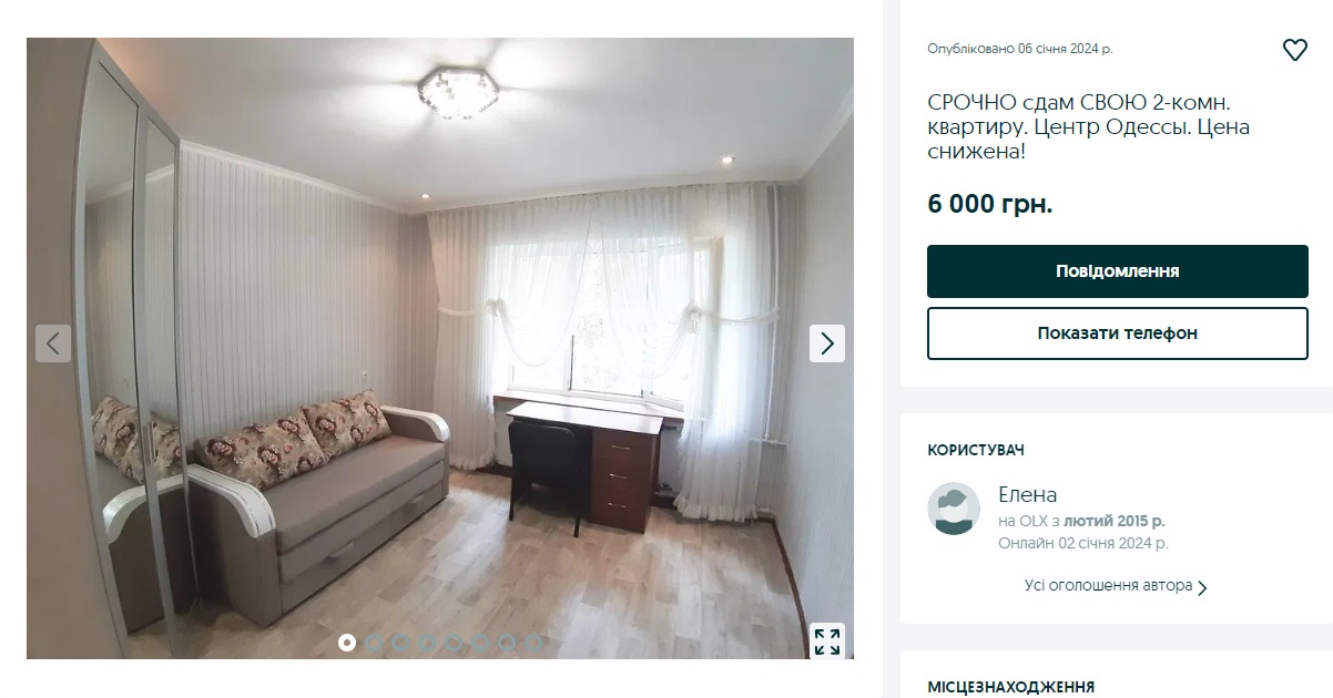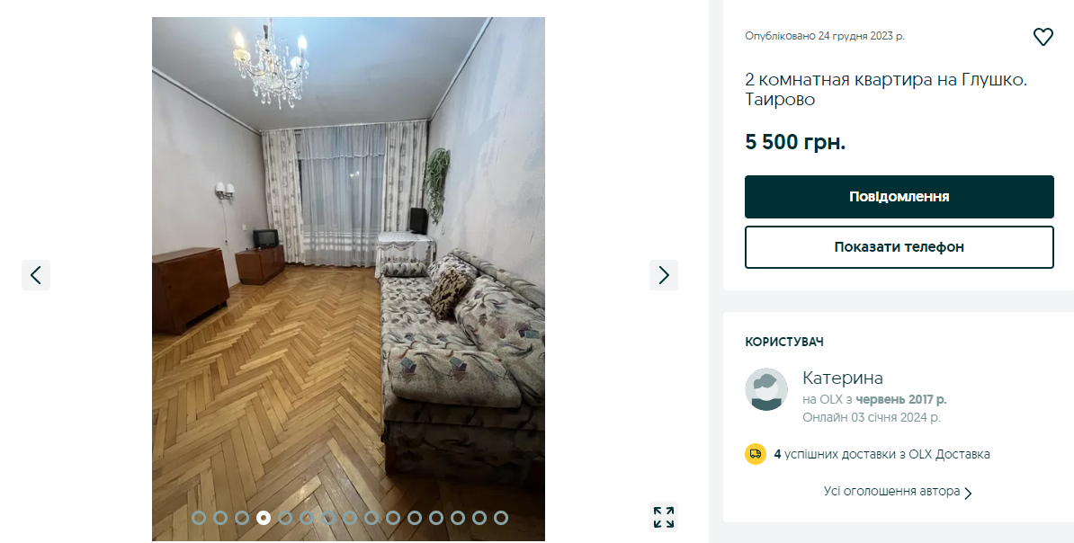 Ціна знижена до 6 тисяч гривень до кінця опалювального сезону точно, далі — за домовленістю. Лише довгостроково», — зазначила авторка оголошення.