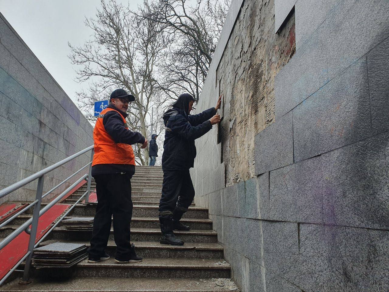 В Одесі тривають роботи з відновлення міської інфраструктури після пошкоджень. Наразі комунальні служби ремонтують підземний перехід на вулиці Дерибасівській, а також ліквідовують наслідки вандалізму в інших районах міста.