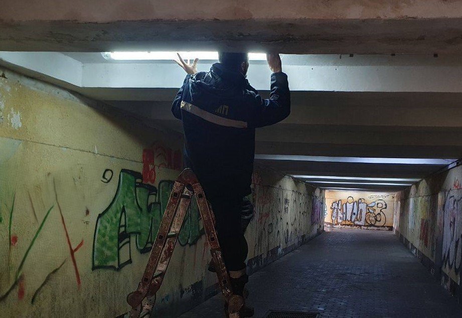 "Також під час планового огляду підвідомчих територій комунальники виявили акт вандалізму в підземному переході: невідомі розбили 6 ламп освітлення переходу, розташованого на Заставі.