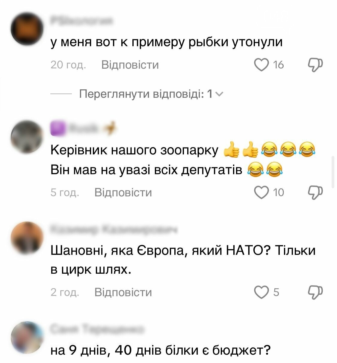 Після доповіді директора зоопарка депутатка Анастасія Большедворова запитала про доцільність закупівлі тварин, а також озвучила причини смерті деяких екземплярів, які зафіксовані у відповідних офіційних документах.