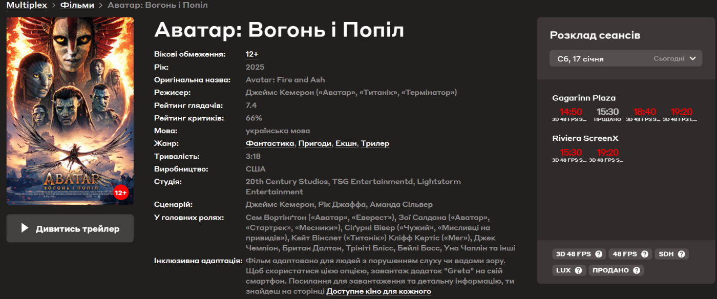 Родина Джейка Саллі стикається з новою загрозою — агресивним Попелястим Народом, очолюваним войовничою лідеркою Варанг. Джеймс Кемерон хотів показати світ На’ві з іншого боку. Масштабні сцени, вогонь, попіл і складні моральні вибори — усе, за що глядачі люблять "Аватар", але ще глибше й жорсткіше.