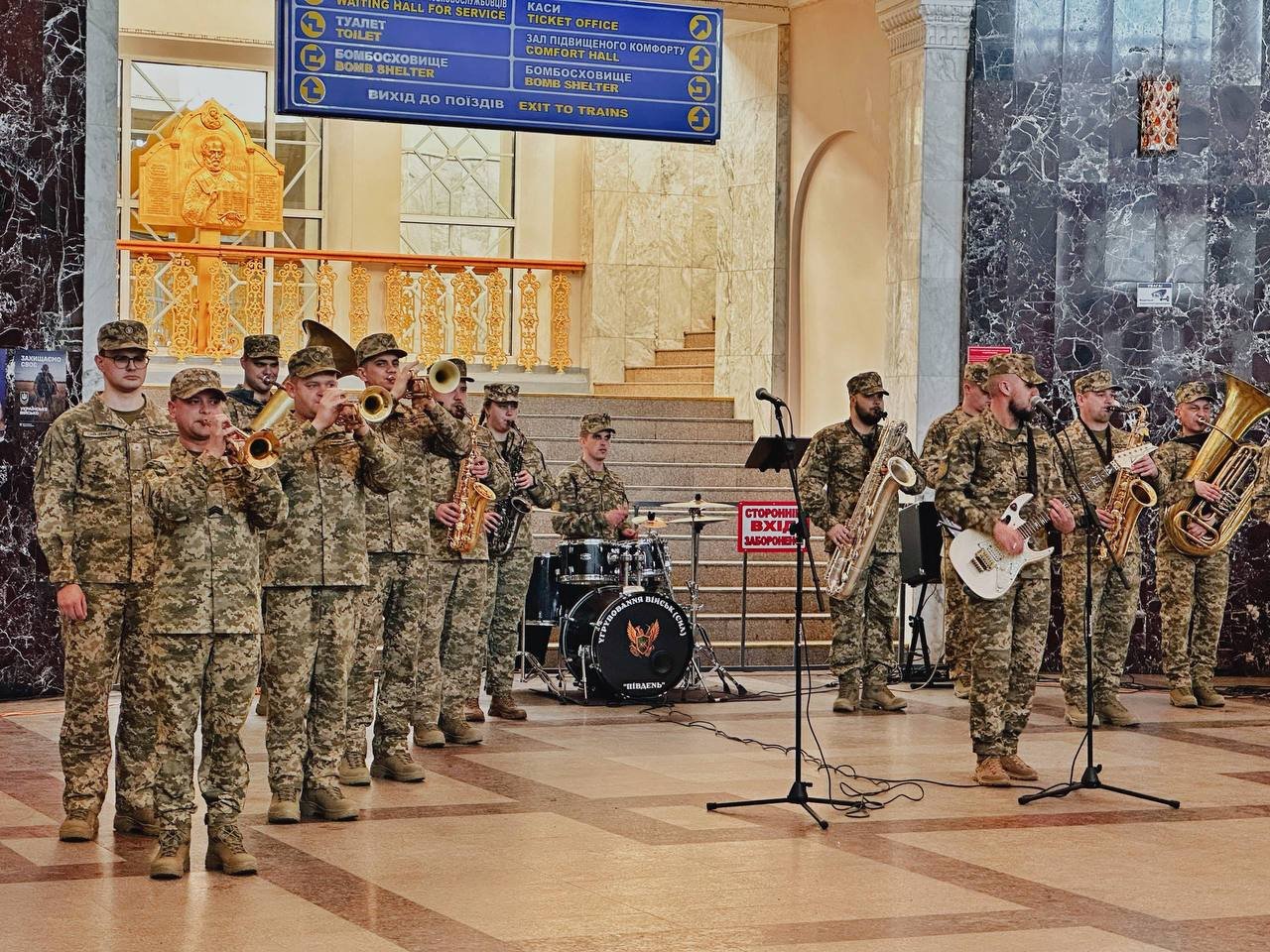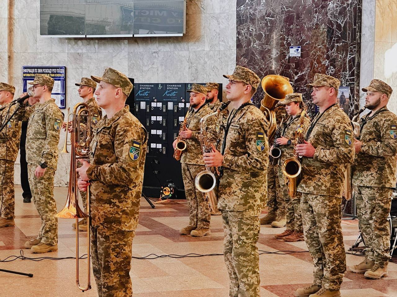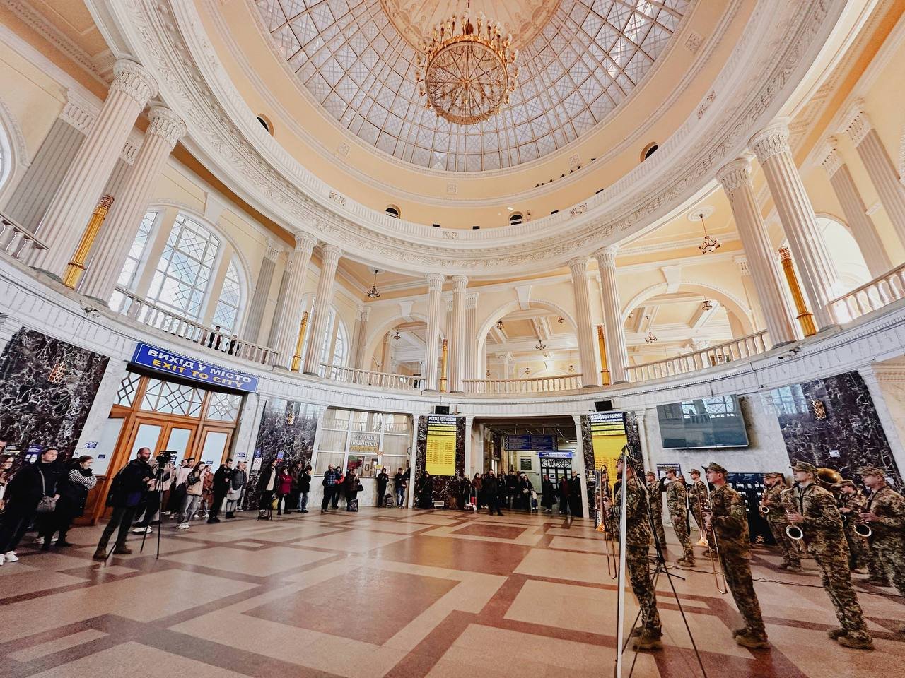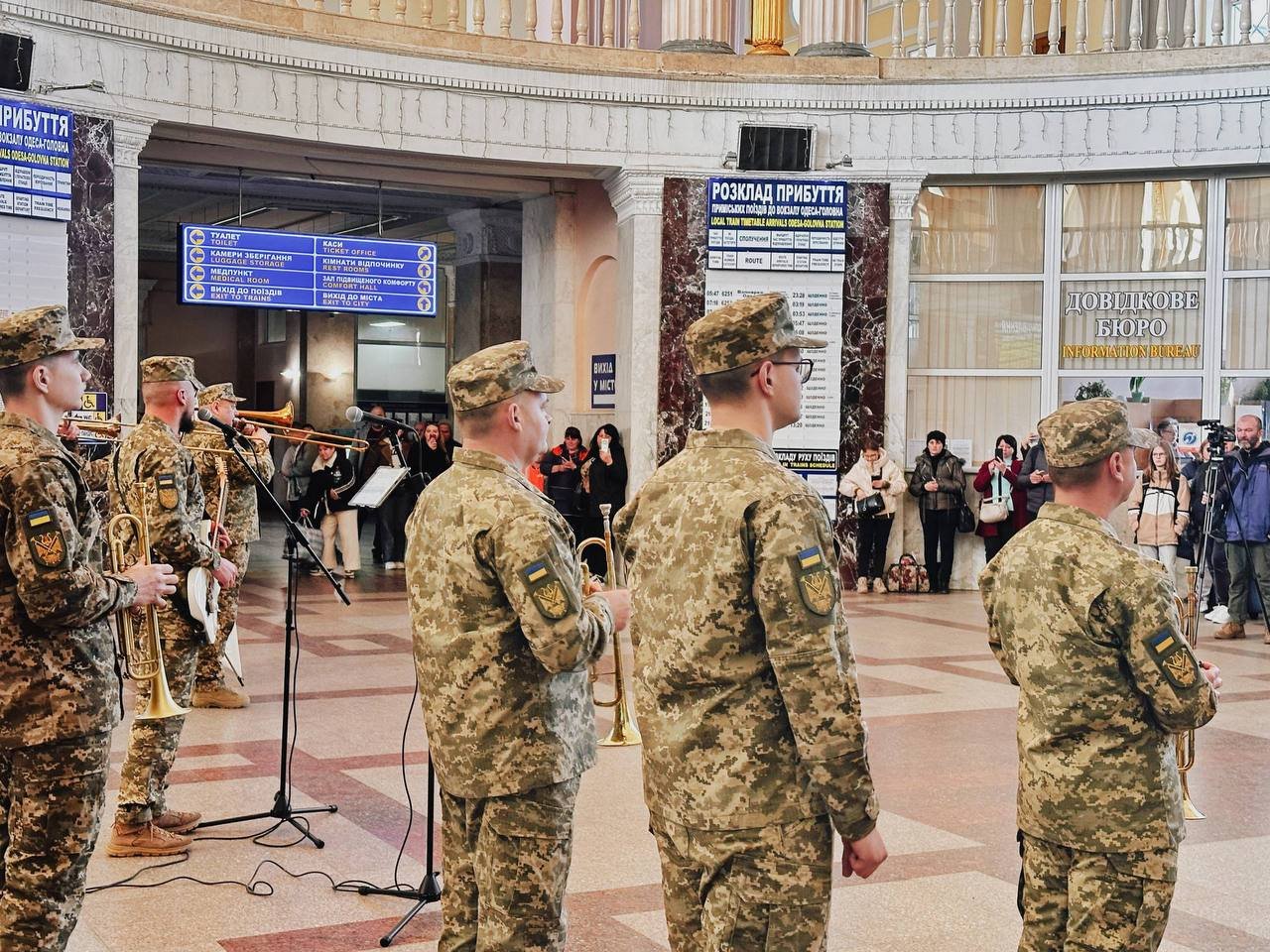 На залізничному вокзалі Одеси влаштували несподіваний музичний виступ. Військовий оркестр виконав патріотичні та світові композиції.