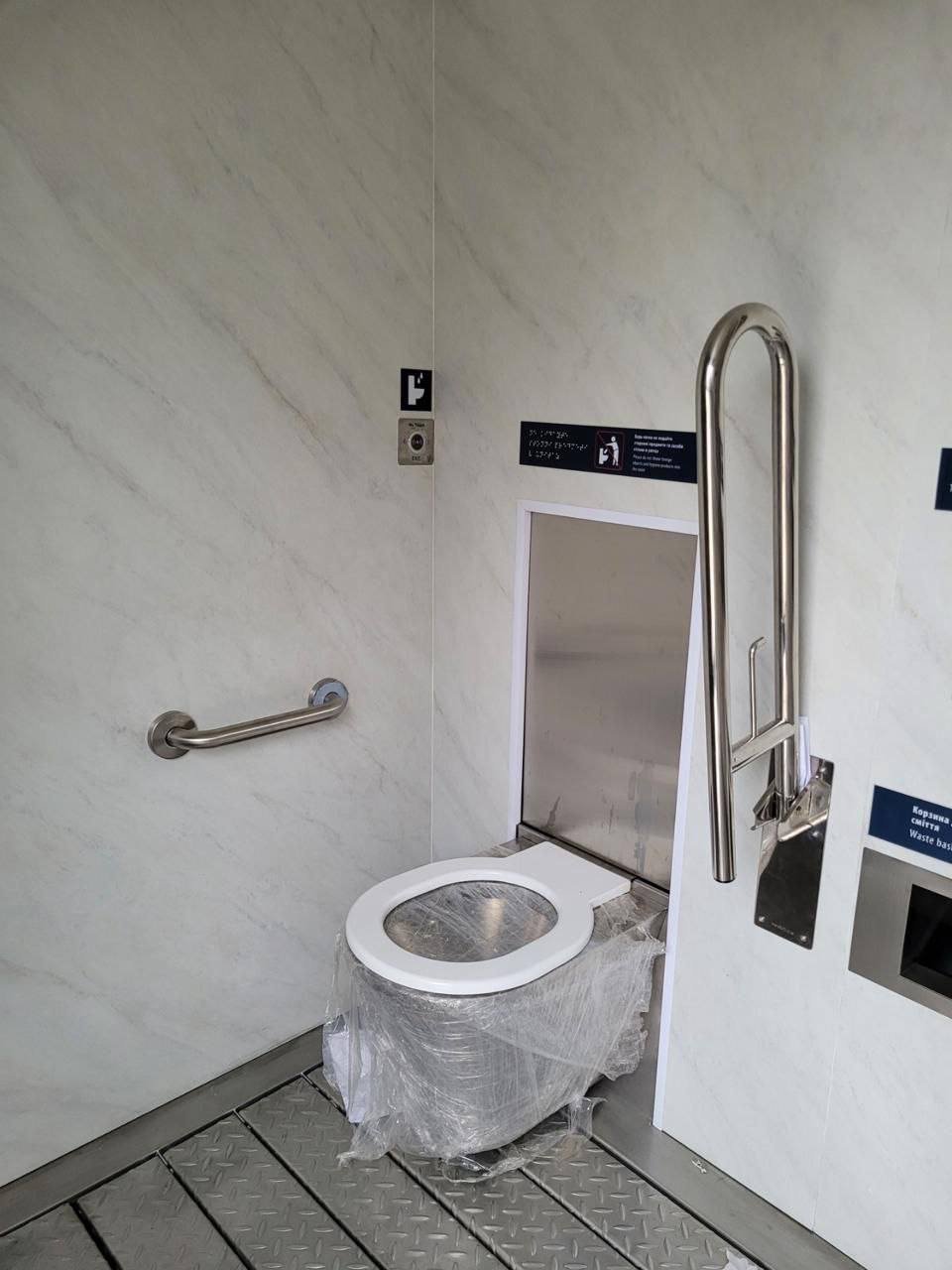 "Для безпеки користувачів встановлено кнопку виклику допомоги, систему зв’язку з диспетчером, а також передбачено автоматичне й ручне відкриття дверей. Час користування кабінкою обмежений 15 хвилинами, після чого двері відчинятимуться автоматично", — йдеться у повідомленні..