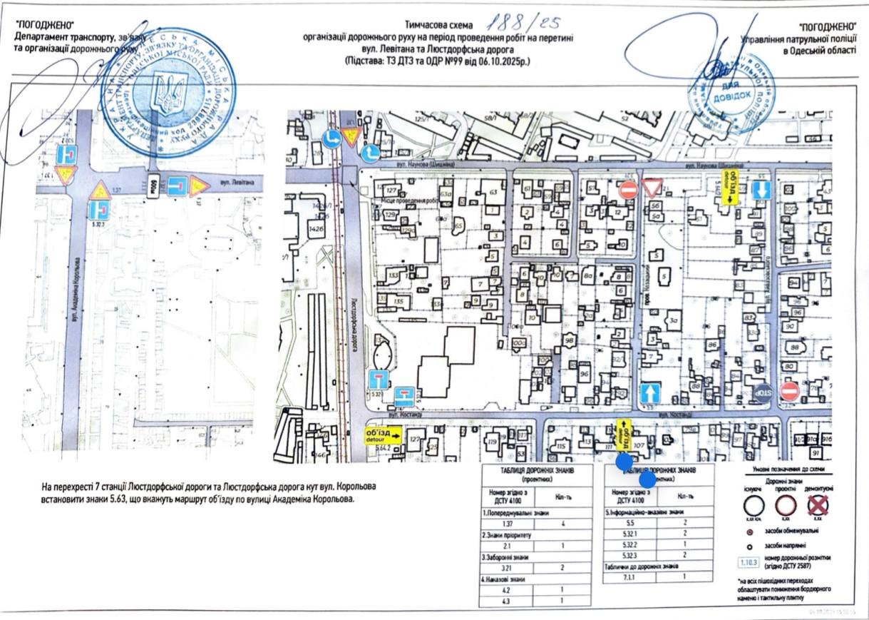 В Одесі обмежено рух транспорту на перехресті Люстдорфської дороги з вулицею Левітана через провал дорожнього полотна. Для безпеки водіїв запроваджено тимчасову зміну схеми руху.