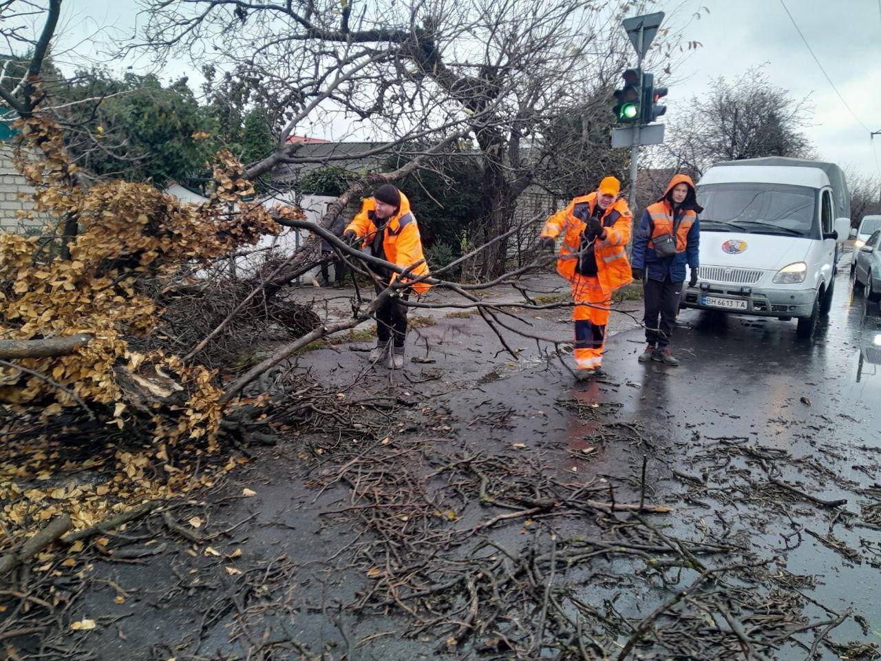 Працівники комунального підприємства «Міськзелентрест» спільно з колегами з КП «Міські дороги» активно працювали над усуненням наслідків негоди. Вони прибирали з вулиць повалені дерева, а також розчищали дрібне гілля, яке створювало незручності для руху транспорту та пішоходів.