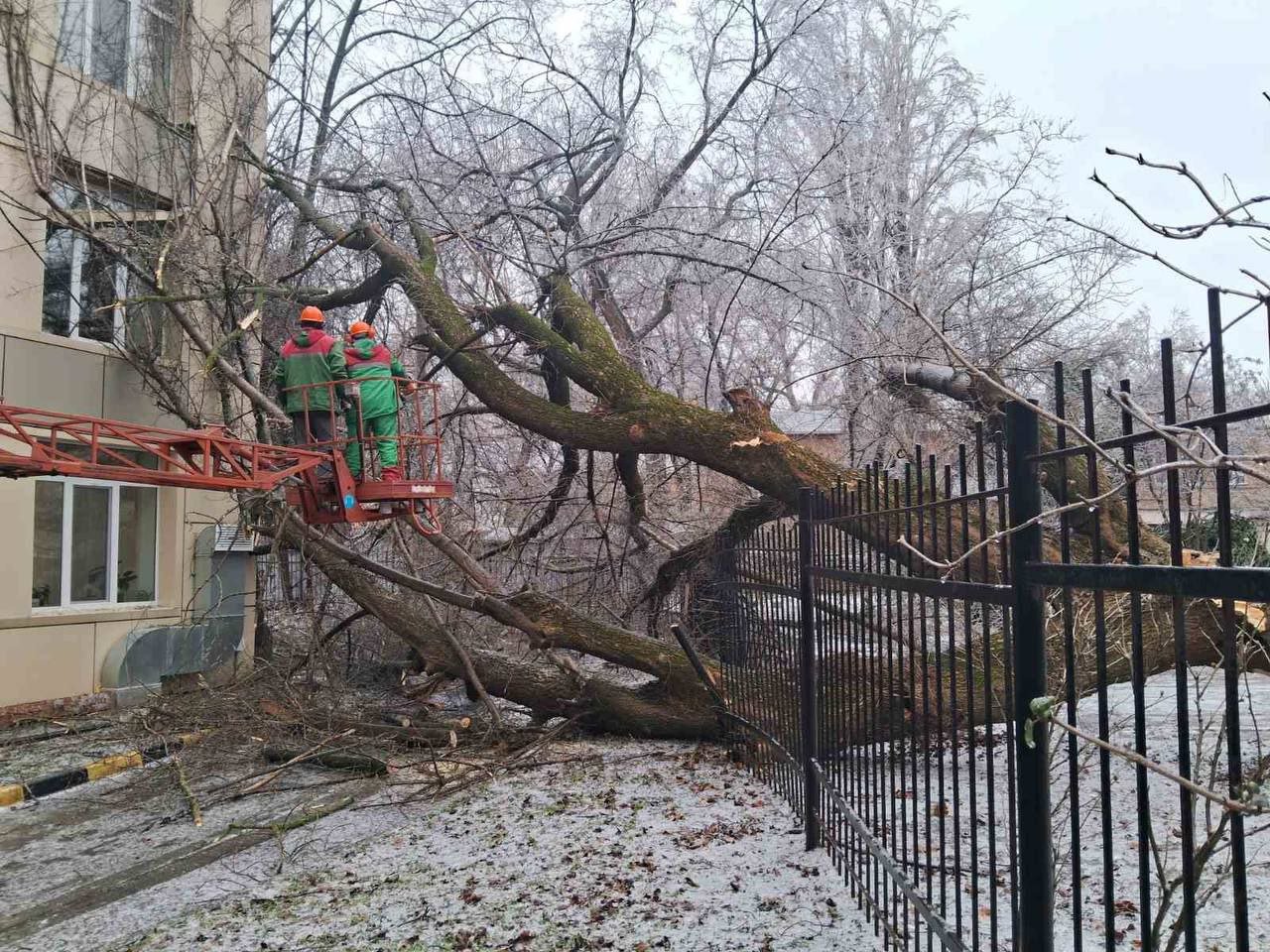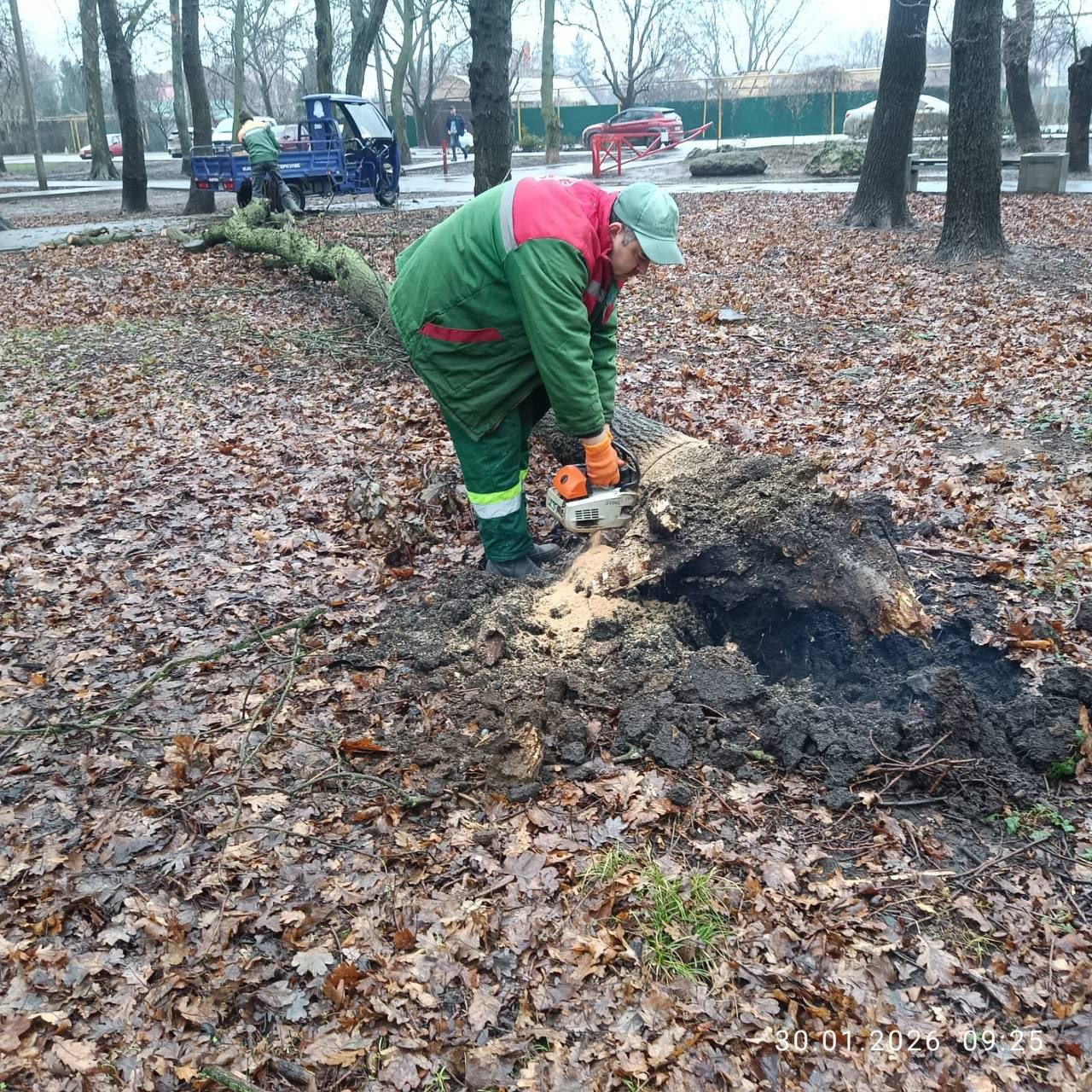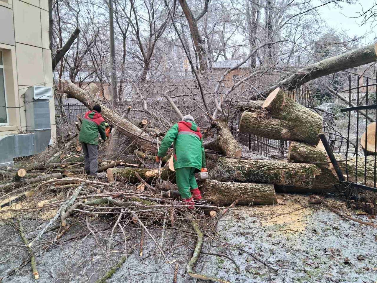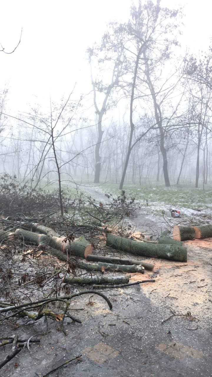 "Спеціалісти КП «Міськзелентрест» закінчують роботи з розпилу та вивозу дерев та ліквідації наслідків останньої негоди", — йдеться у повідомленні.