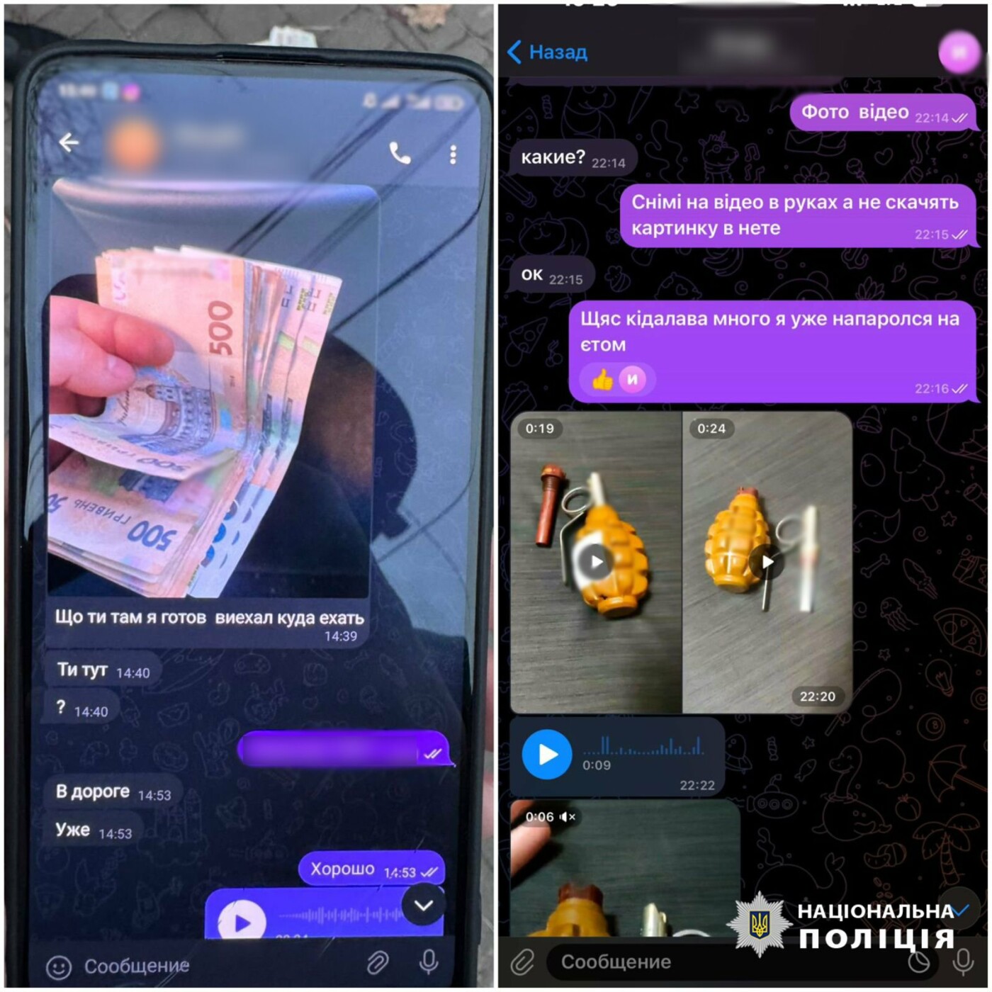Спеціалісти вилучили з місця події корпус гранати із запалом до неї. За попереднім висновком фахівців, вилучені предмети є вибухонебезпечними. Їх направили на експертне дослідження. Крім того, в якості речових доказів у правопорушника вилучили кошти, отримані за збутий "товар".