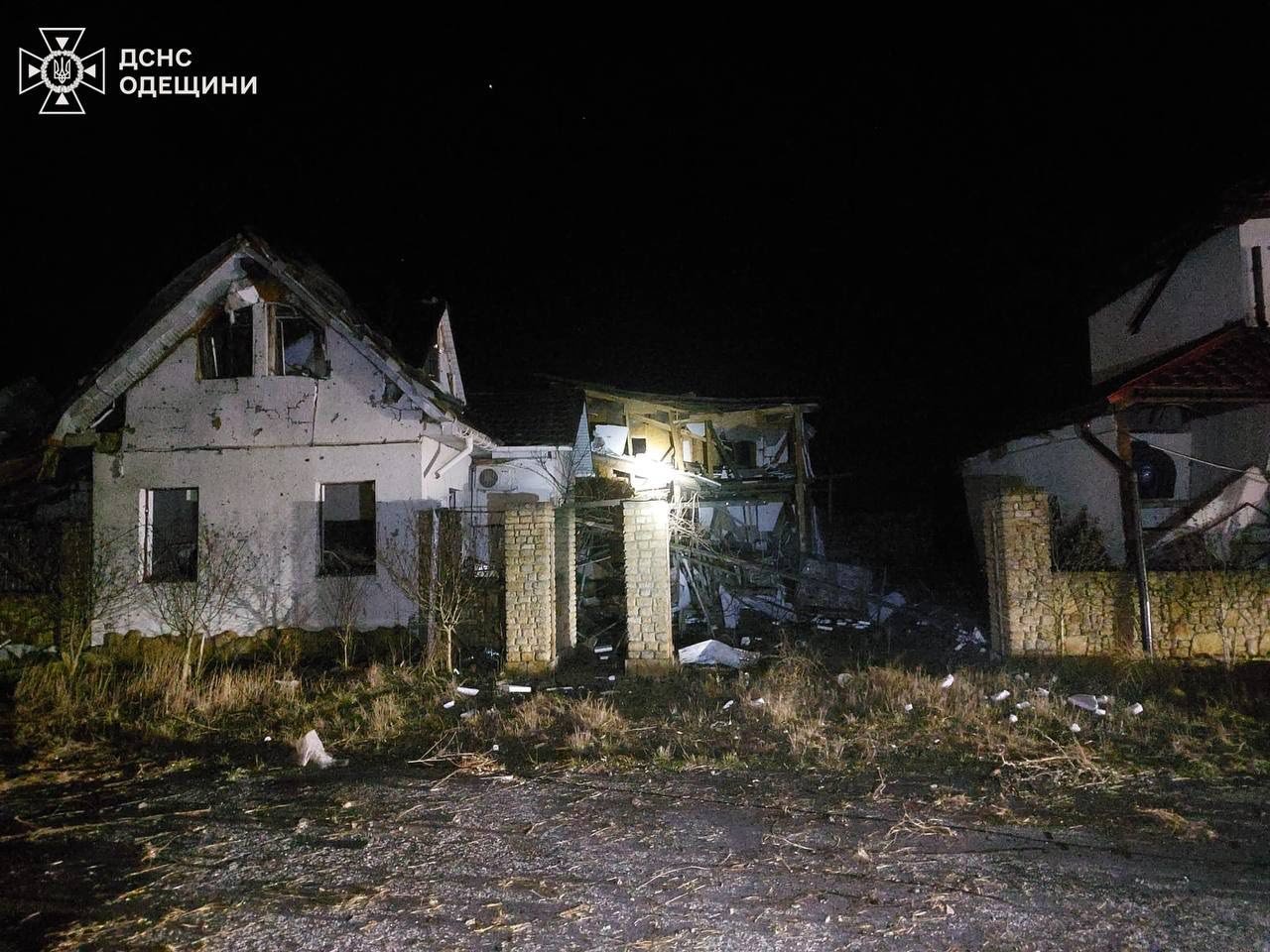 Як повідомили в Головному управлінні ДСНС України в Одеській області, внаслідок атаки виникла пожежа на території недіючої бази відпочинку. Вогонь охопив дерев’яні будинки на загальній площі близько 250 квадратних метрів.
