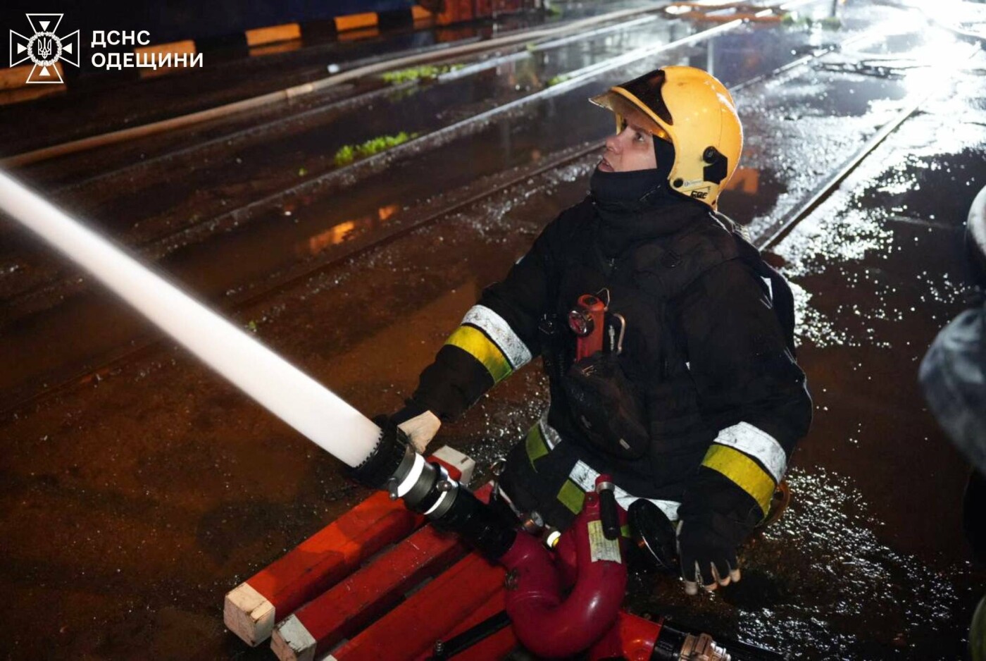 У пресслужбі ДСНС повідомили, що всю ніч вогнеборці ліквідовували пожежі, які виникли внаслідок влучань. Попри постійні повітряні тривоги рятувальникам вдалося приборкати вогонь на цивільному судні.