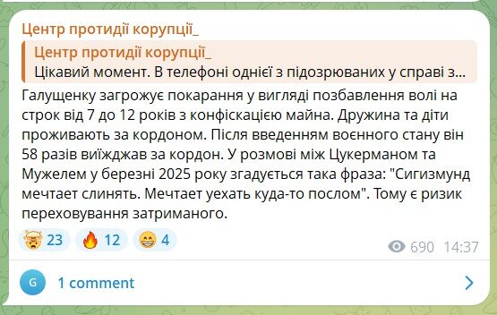 "Сигизмунд мечтает спетлять. Мечтает уехать куда-то послом", — звучало в материалах прослушки, где "Сигизмундом" участники схемы называли Галущенко.